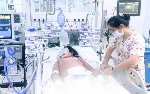 Tại đây, các bác sĩ xác định trẻ bị sốc sốt xuất huyết nặng độ 3, biến chứng suy hô hấp, rối loạn đông máu, xuất huyết tiêu hóa, tổn thương gan trên nền cơ địa béo phì. Bệnh nhi được truyền dịch cao phân tử (Dextran 40%), albumin, thuốc vận mạch, theo dõi sát các chỉ số sinh tồn qua thiết bị xâm lấn như đo huyết áp động mạch, áp lực tĩnh mạch trung ương và bàng quang.