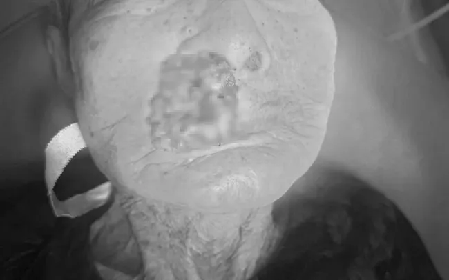 Chẩn đoán ban đầu cho thấy bệnh nhân mắc ung thư da tiến triển, nghi ngờ là biểu mô tế bào đáy, kèm nhiễm trùng mô hoại tử và giòi ký sinh. Sau hội chẩn, các bác sĩ đã phẫu thuật loại bỏ khối u, làm sạch ổ giòi, cầm máu và tạo hình che phủ vùng tổn thương.