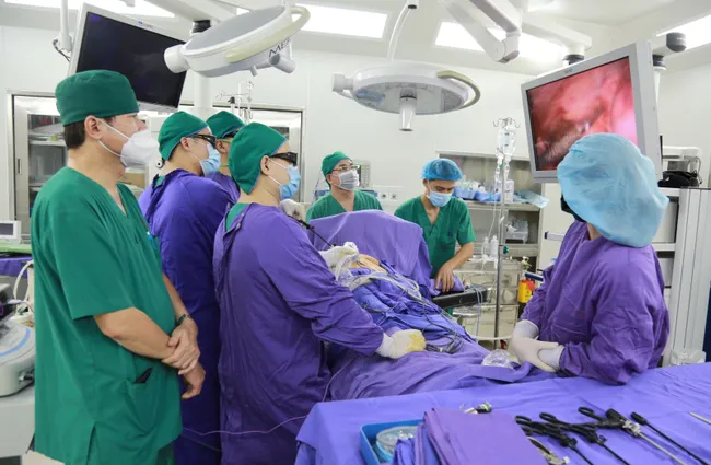Hệ thống nội soi 3D hiện đại hỗ trợ đắc lực các bác sĩ thực hiện bóc tách u tuyến ức. Ảnh: BVCC